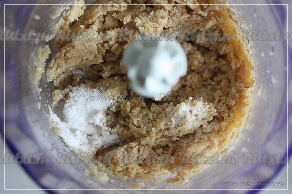 Перемолоть, добавить соль, разрыхлитель, ванилин.
