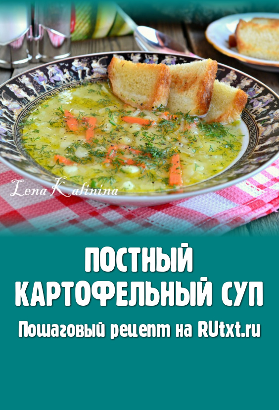 Постный картофельный суп с гренками - очень вкусное первое блюдо для разнообразия вашего обеденного стола. Супчик получается легким, но очень насыщенным и довольно сытным. Попробуйте обязательно!