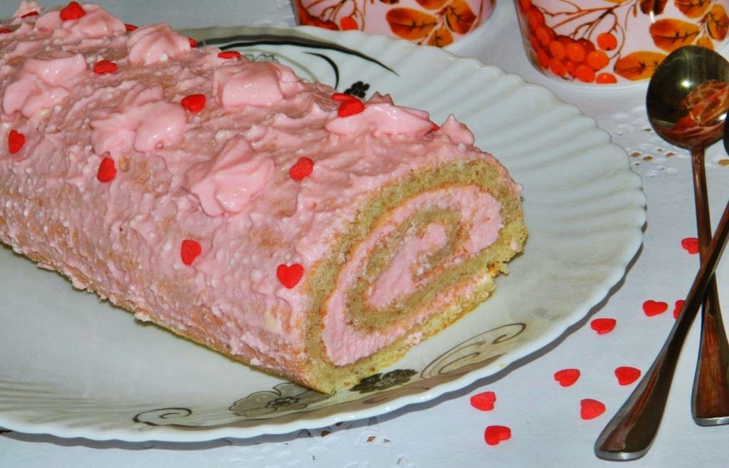 Бисквитный рулет с кремом готов. Выпечка получается изумительно вкусной.