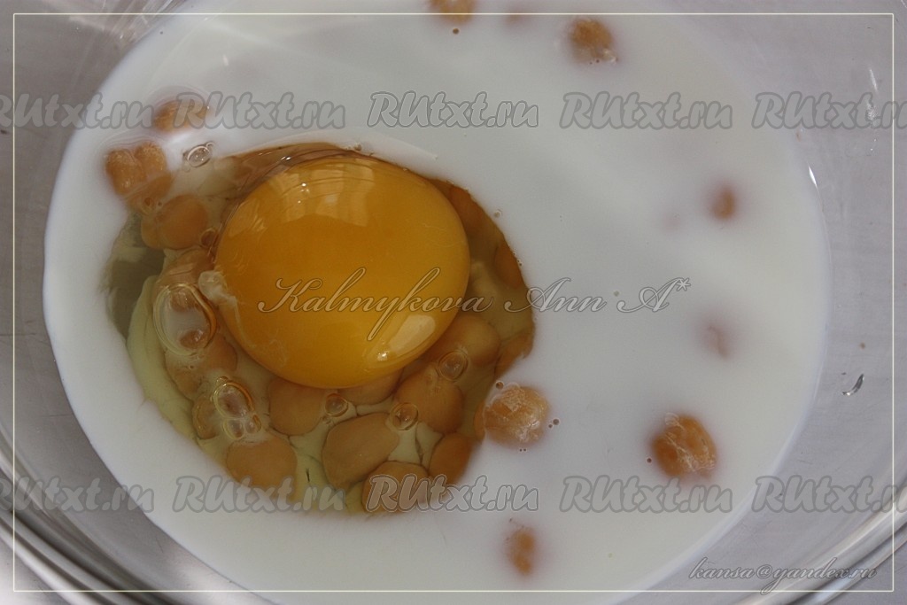 Добавить в яичную смесь и ещё раз хорошо перемешать.