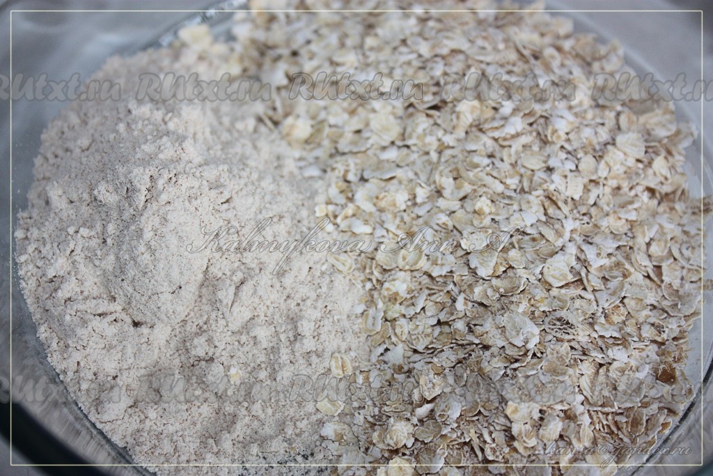 Смешать цельнозерновую муку и овсянку.