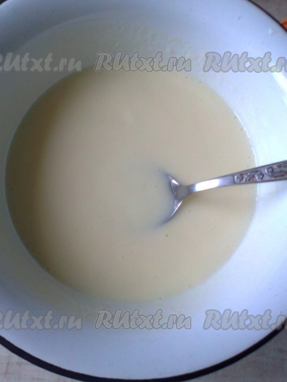 В глубокой миске смешиваем кефир комнатной температуры, сахар, яйцо, соль, соду, мягкое сливочное масло.