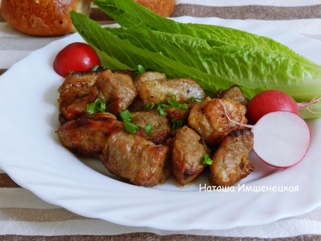 Вкусная и сочная жареная свинина в соевом соусе готова.
