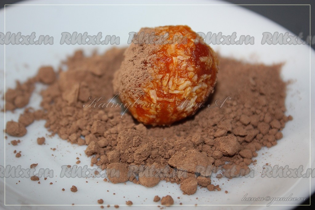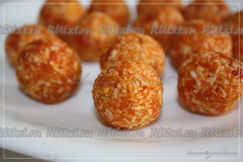 Вкусные домашние конфеты из кураги и кокоса готовы.