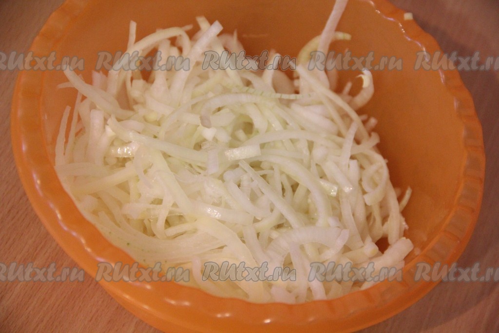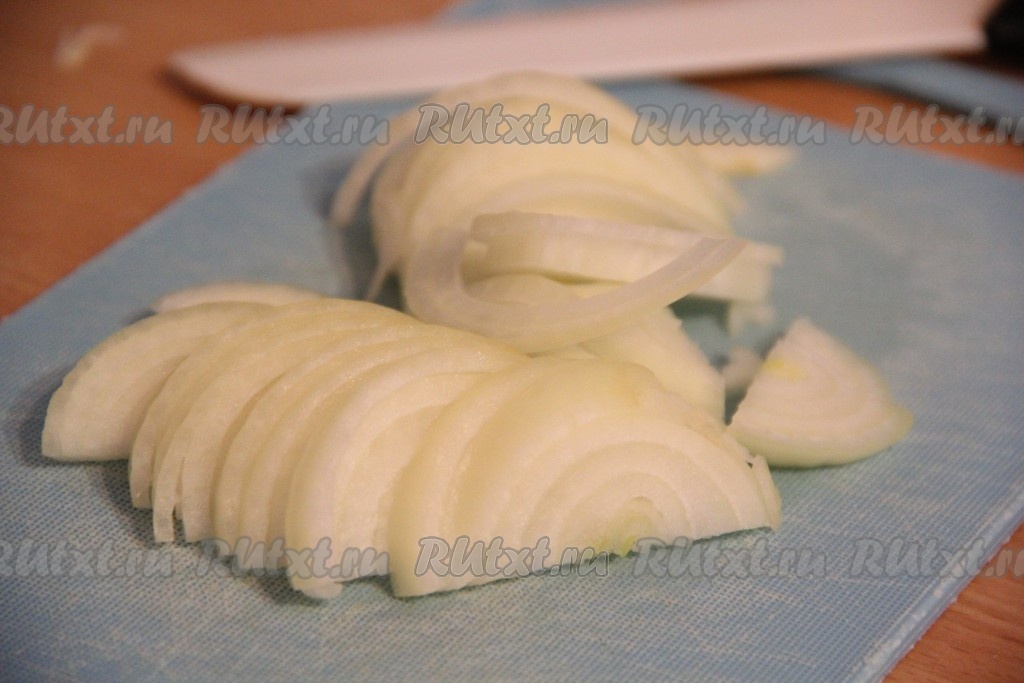Лук нарезать полукольцами.