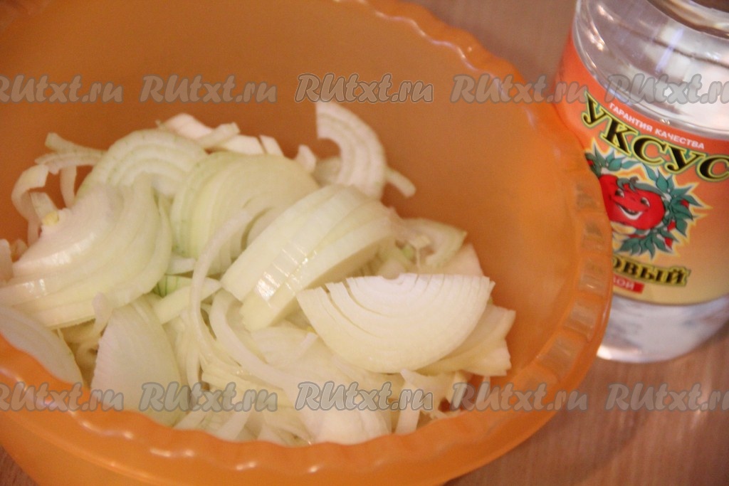Тщательно перемешать лук с уксусом.
