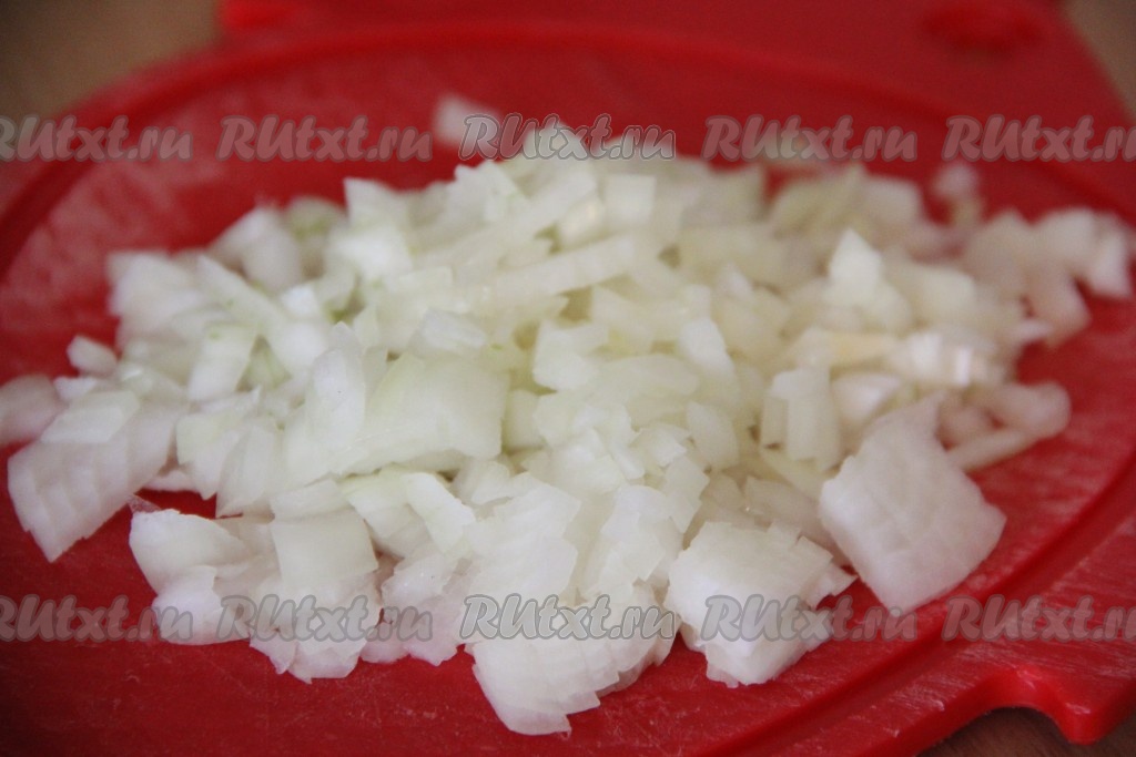 Лук мелко нарезать.