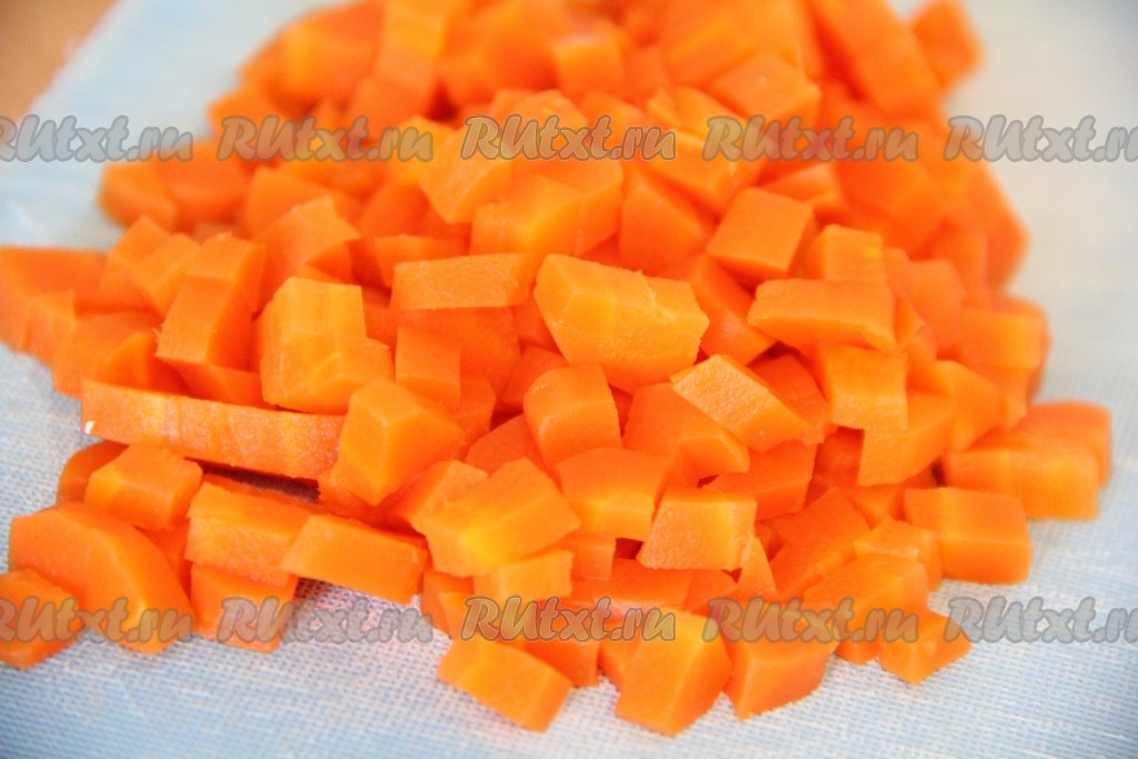 Морковь нарезать на средние кубики.