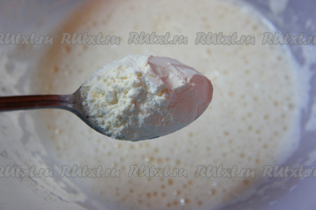 Добавить 3 столовых ложки муки от общей массы, тщательно перемешать. Накрыть миску полотенцем и убрать получившуюся опару в тёплое место на 10-20 минут.