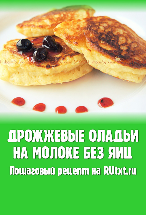 Дрожжевые оладьи, приготовленные на молоке без добавления яиц, получаются вкусными, пышными, аппетитными, к столу их лучше подавать горячими, дополнив сметаной, сгущёнкой или вареньем на ваш выбор.