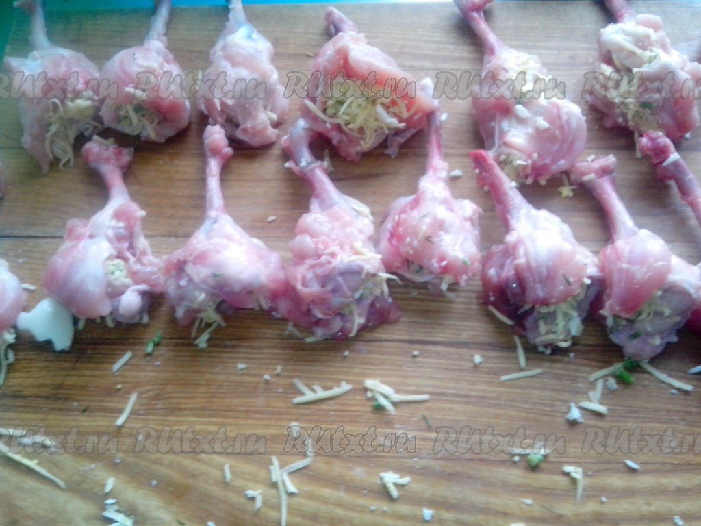 Маринованные крылья фаршируем смесью сыра, масла и зелени.