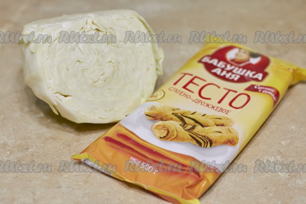 Раскатываем половину слоеного теста, выкладываем в форму и сверху кладем остывшую начинку из капусты. Накрываем второй половиной раскатанного теста, защипываем края, делаем сверху небольшие надрезы, смазываем верх пирога холодной водичкой (при желании можно посыпать кунжутом). Отправляем капустный пирог в разогретую духовку на 20-25 минут при температуре 180 градусов. Вот такой аппетитный пирог у Вас получится!