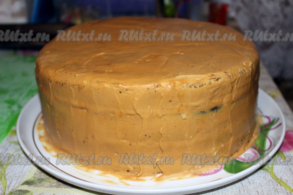 Затем выровнять поверхность торта масляным кремом (я приготовила крем из сливочного масла+сгущенка).