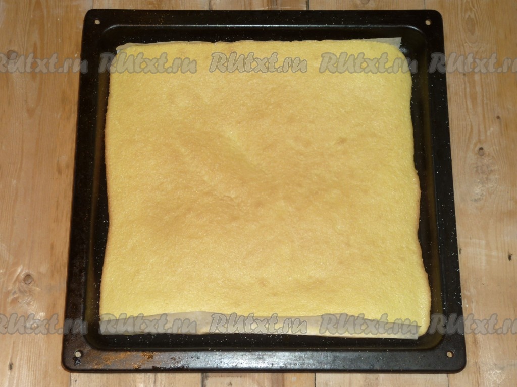 Выпекать бисквит в разогретой до 180 градусов духовке 15 минут. Корж должен слегка подрумяниться и стать сверху сухим, а не липким.