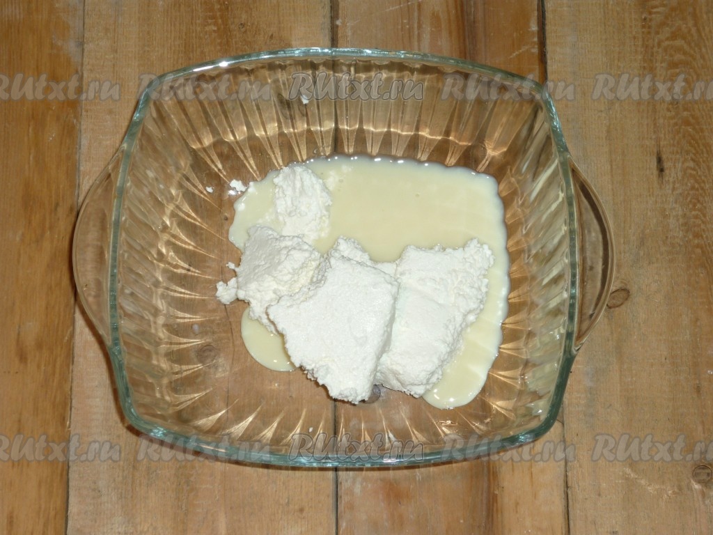 Перебить смесь творога и сгущенки блендером до однородной массы.