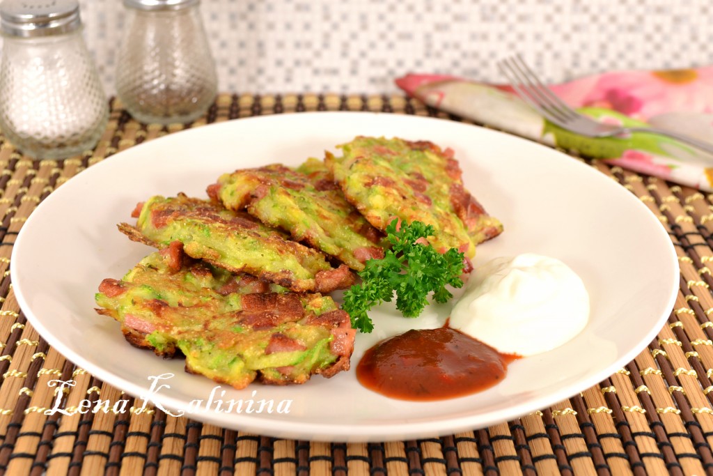Подать вкуснейшие оладьи из кабачков с колбасой в горячем или теплом виде со сметаной или вашим любимым соусом. Можно смешать сметану с острым томатным соусом или кетчупом - очень вкусно!