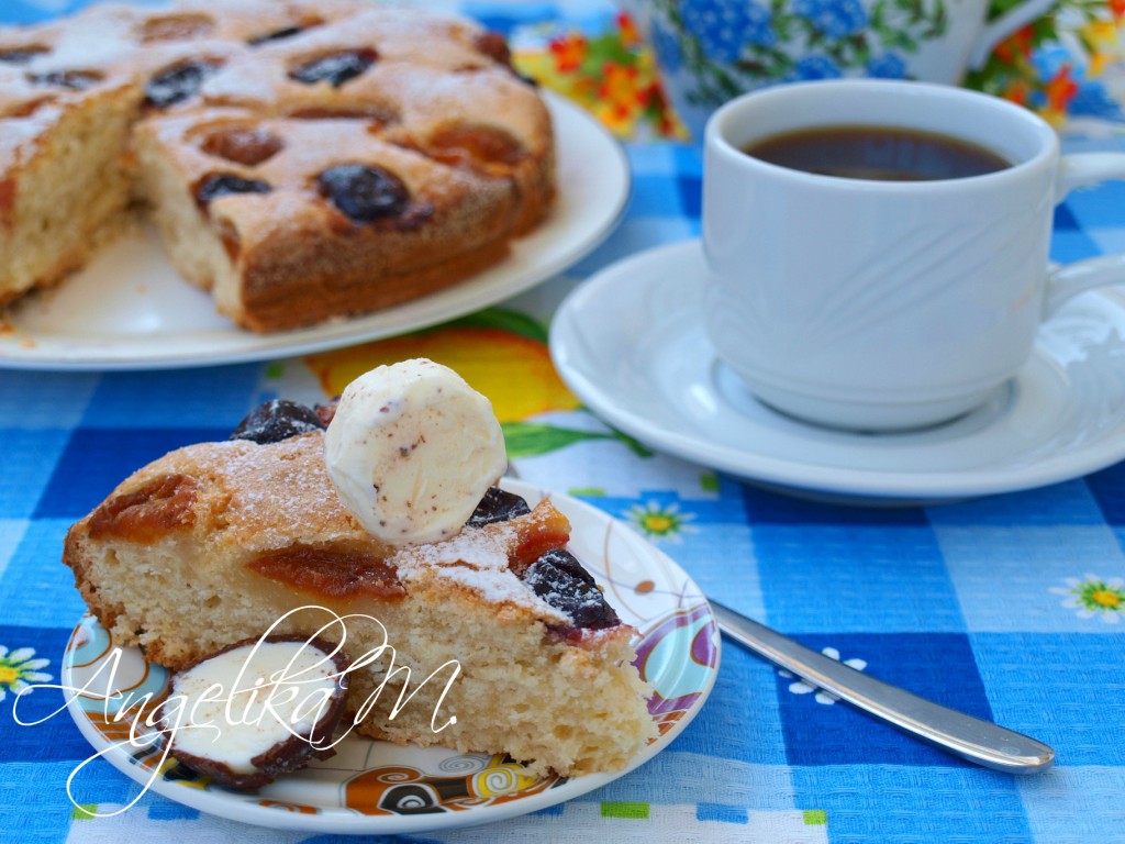 Если у вас в морозилке найдутся замороженные фрукты, тогда предлагаю испечь простой и очень вкусный пирог. Тесто для этой выпечки замешивается на кефире. Пирог хорошо пропекается, получается в меру сладким. Замороженные фрукты берите те, которые есть у вас в морозилке. Такой домашний пирог - прекрасная выпечка для семейного чаепития!