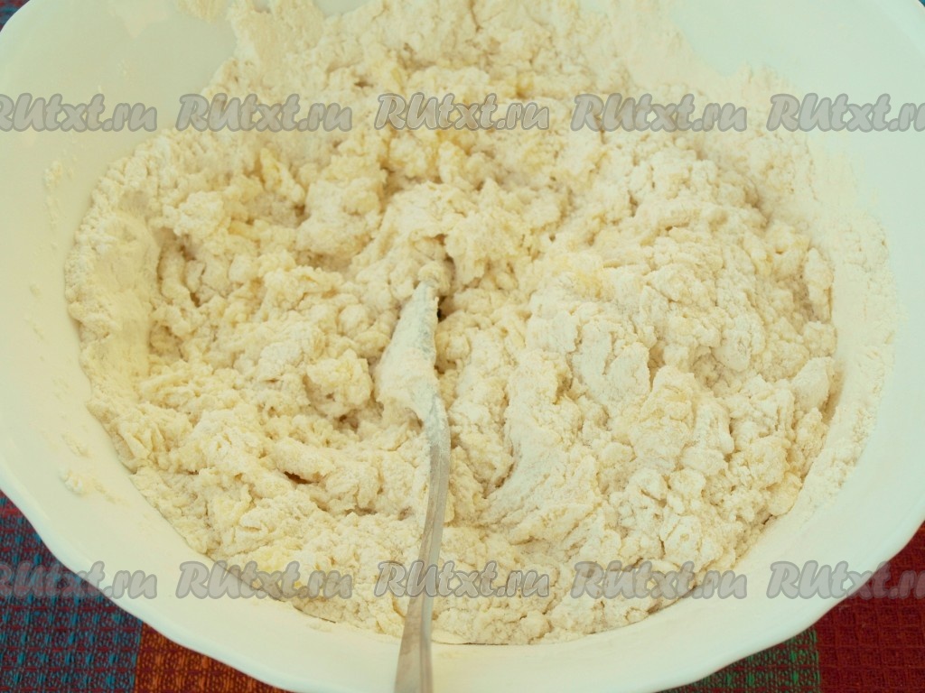 Итоговое тесто для пирога должно медленно стекать с ложки, напоминать в меру густую сметану. Как только добились такой консистенции, больше муку не добавляйте.