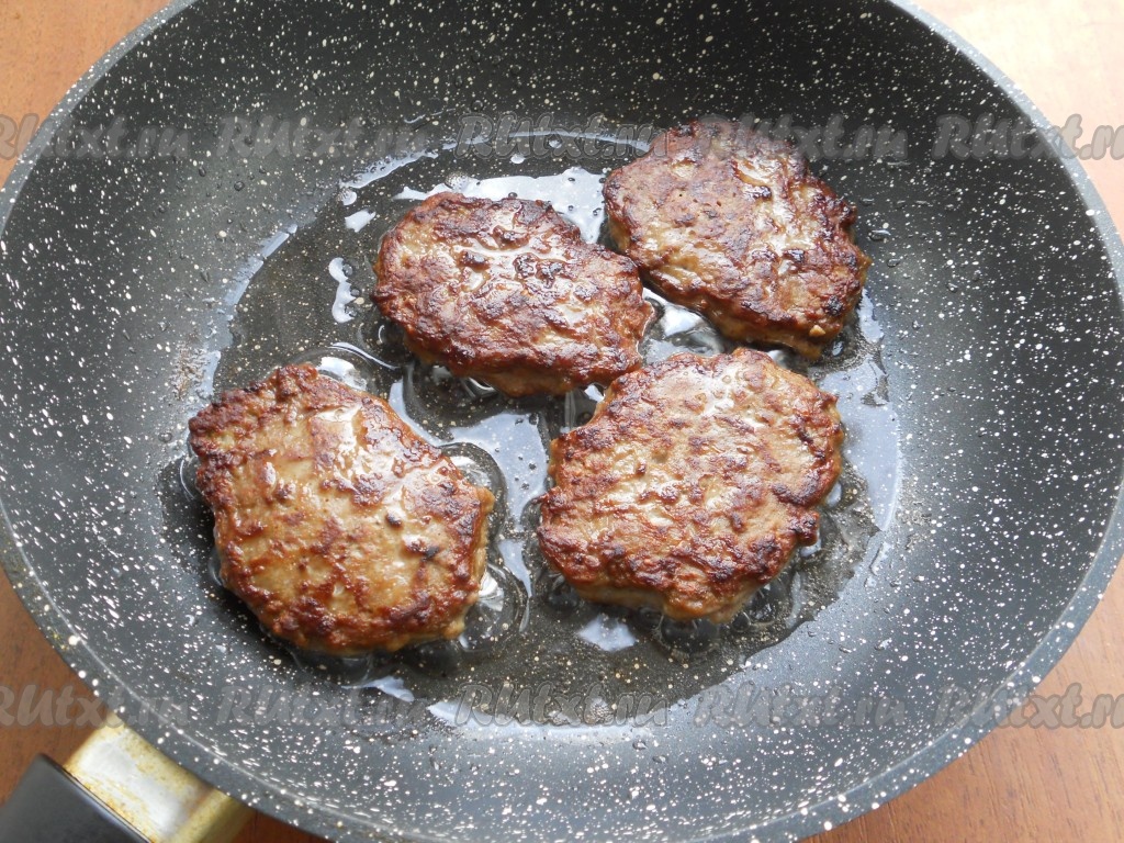 Жарить на среднем огне до румяной корочки с двух сторон. Котлетки жарятся быстро - не пережарьте!