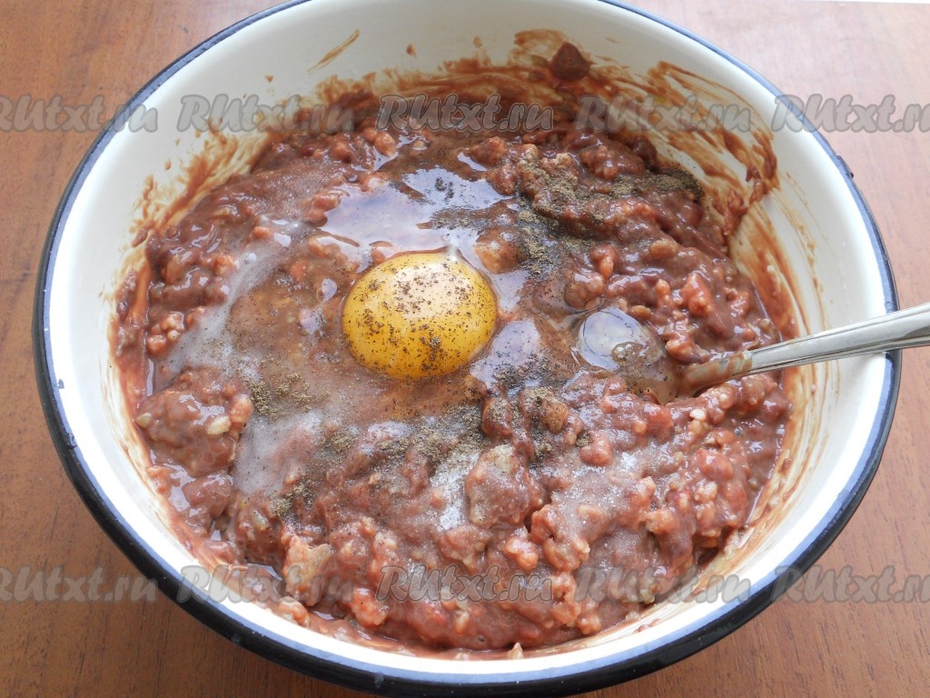 Добавить сырое яйцо, посолить фарш и поперчить.