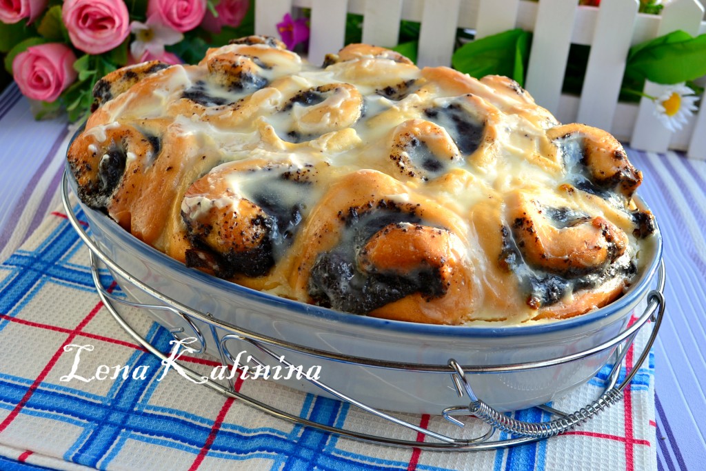 Неописуемо нежные, воздушные, безумно вкусные дрожжевые булочки с маком и курагой в сметанной заливке можно подавать к столу. Можно отламывать булочки, можно разрезать ножом - как вам будет удобно.