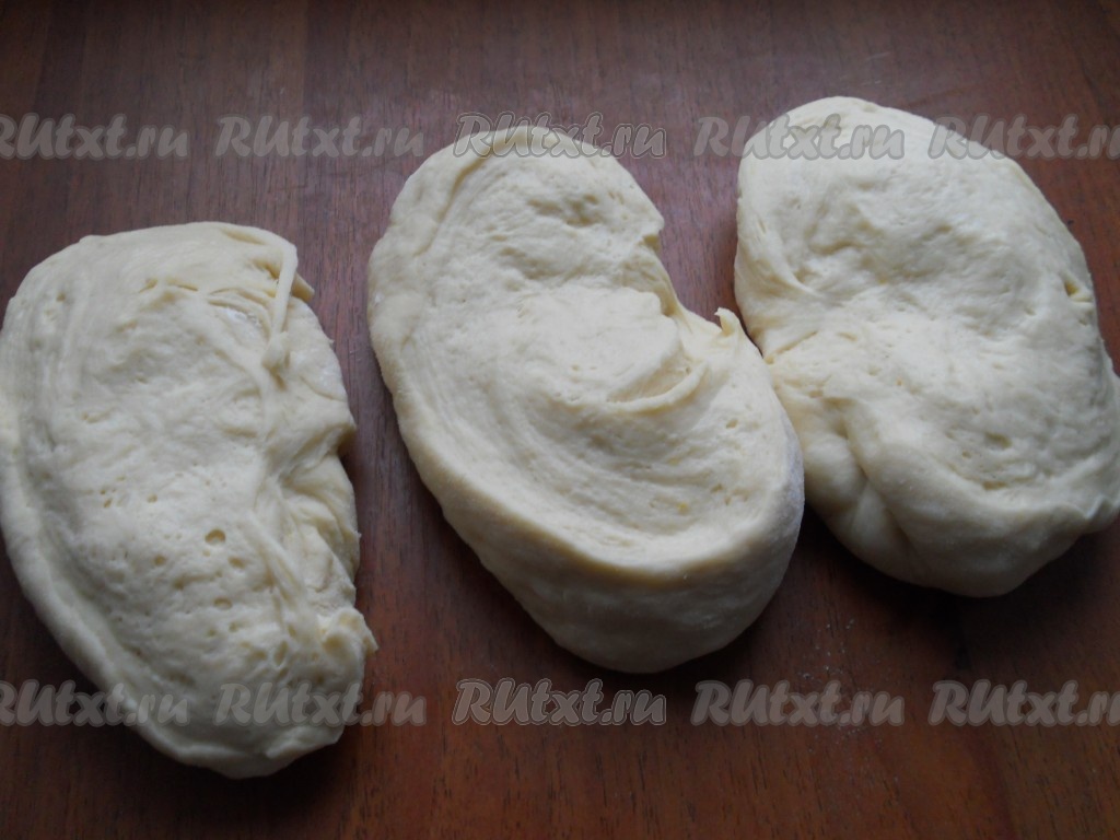 Разделить тесто на 3 части.