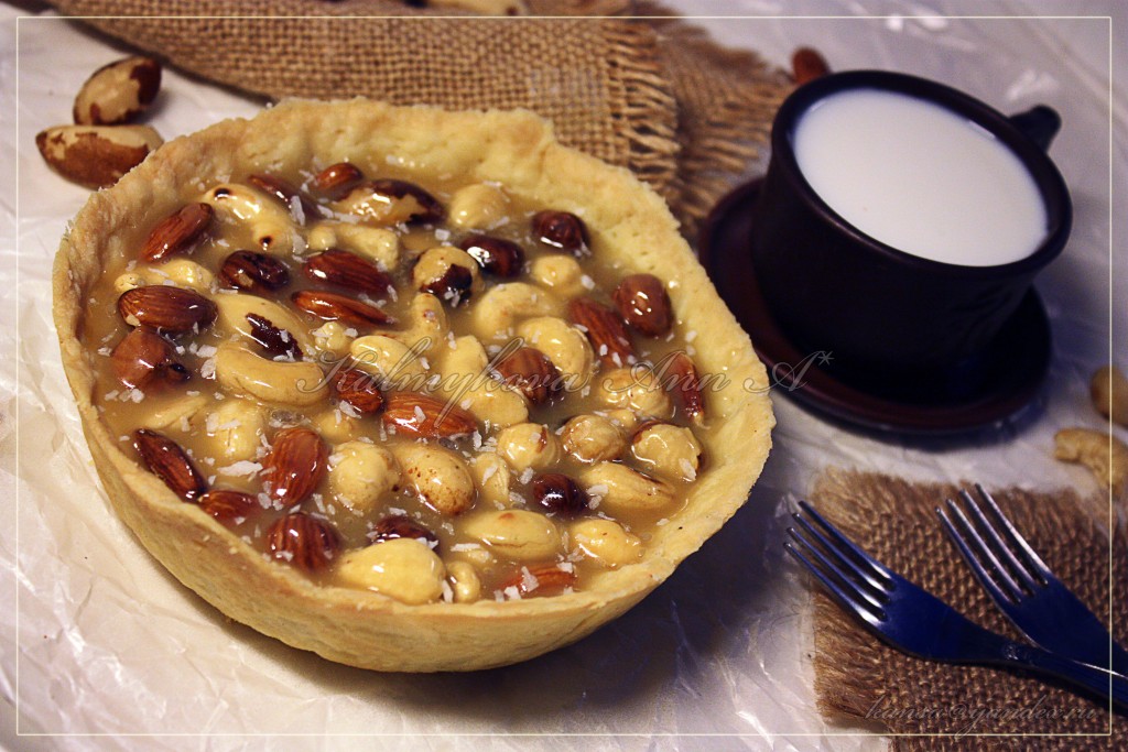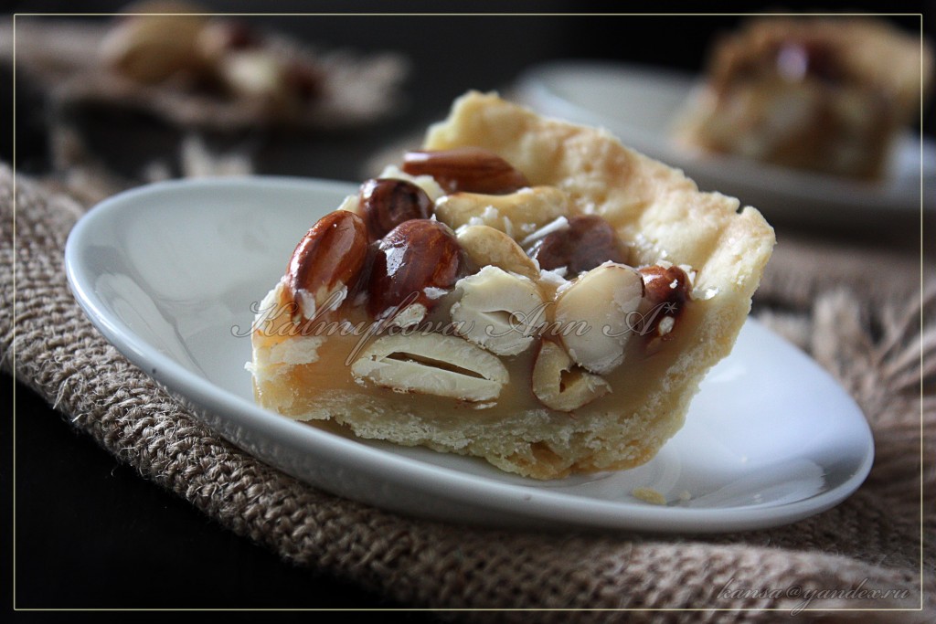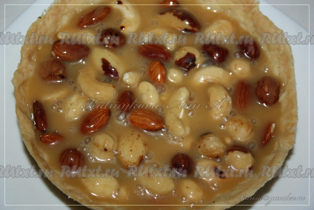 Залить орехи карамелью и дать застыть. Наилучший вкус и текстура этого пирога с ореховой начинкой в день приготовления. Хранить при комнатной температуре до 2-х дней. Не ставить в холодильник.