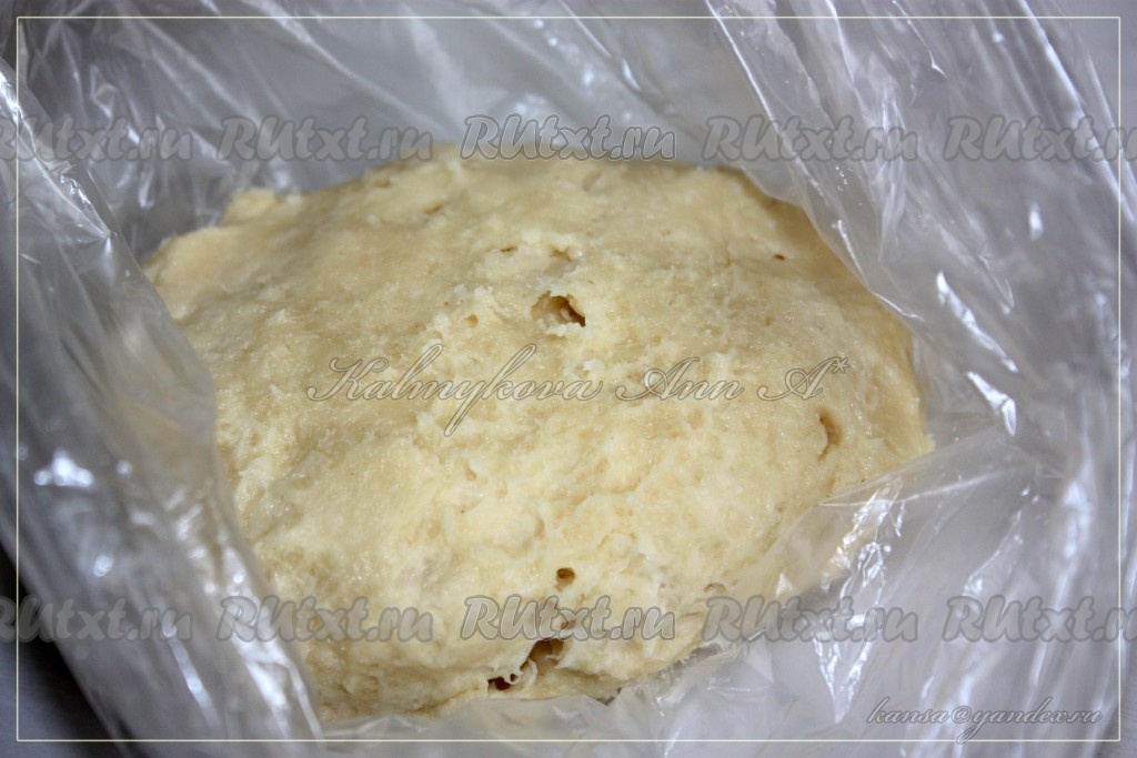 Готовое тесто сформировать в шар, слегка его расплющить, положить в пакет и убрать в морозилку на 20-30 минут.