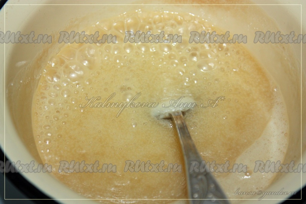 Уваривать карамель до тянучего состояния.