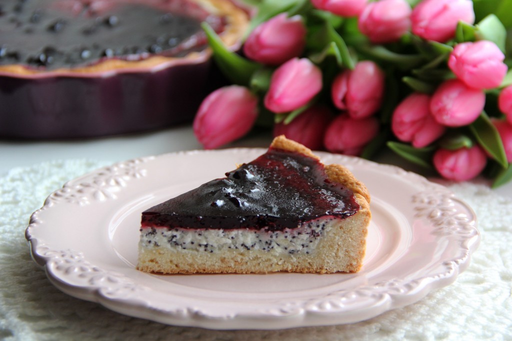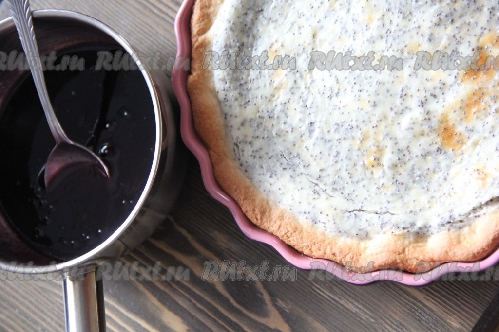 Вылить заливку из варенья поверх творожной начинки и поставить пирог в холодильник на 4-5 часов (можно на ночь).