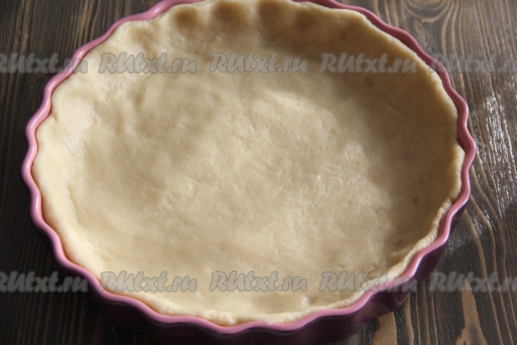 Тесто выложить в форму для выпекания, распределяя равномерно по всей поверхности и формируя бортик.