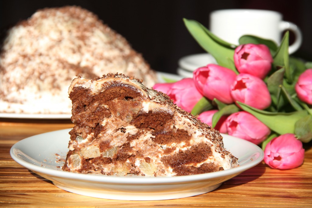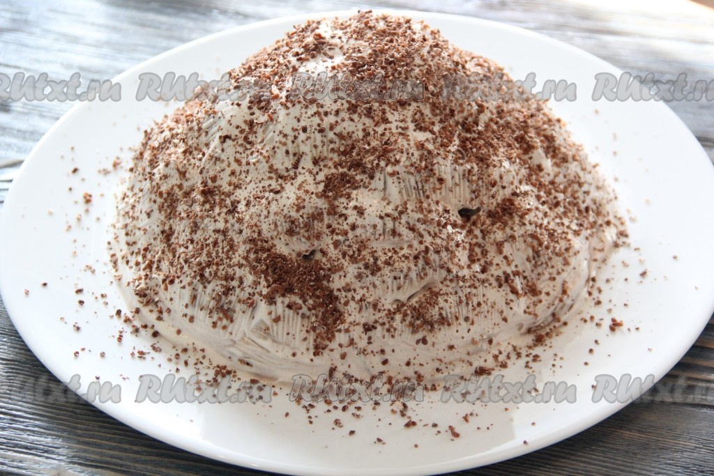 Перед подачей посыпать верх торта тёртым шоколадом или дроблёными орехами.