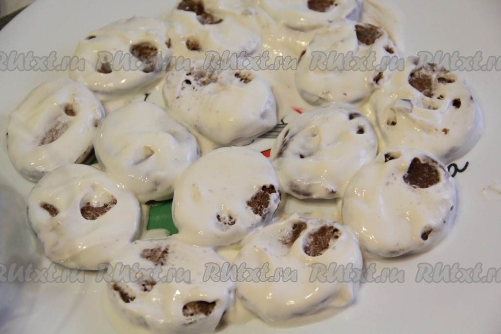 Обмакнуть кусочки пряников полностью в сметану.