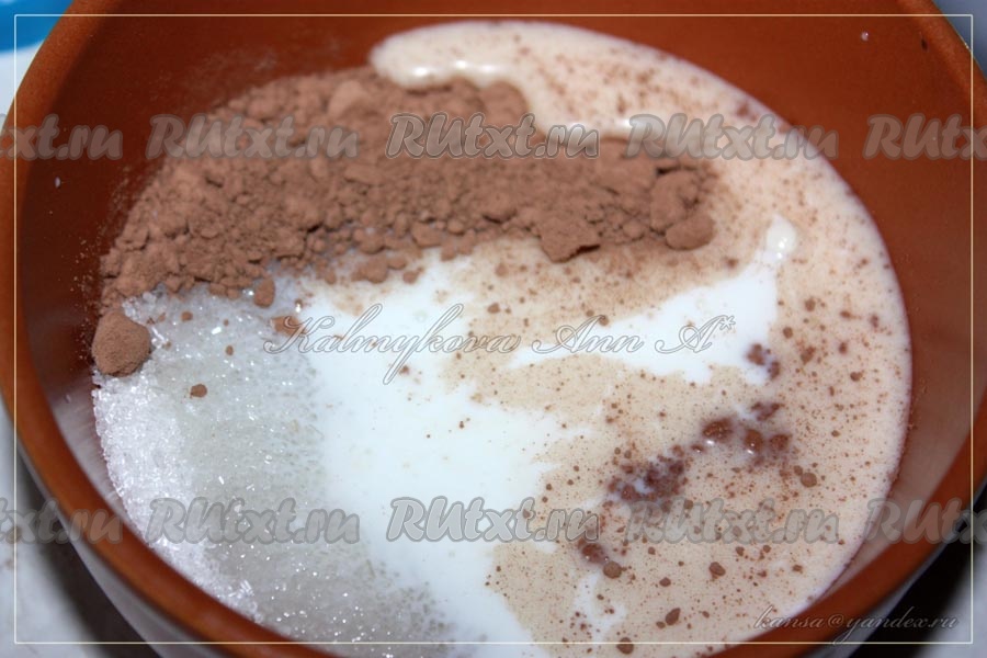 Для того чтобы украсить пирожные, Вы можете использовать растопленный шоколад или сделать глазурь. Для приготовления глазури смешать какао, молоко и сахар, поставить нагревать на водяную баню.