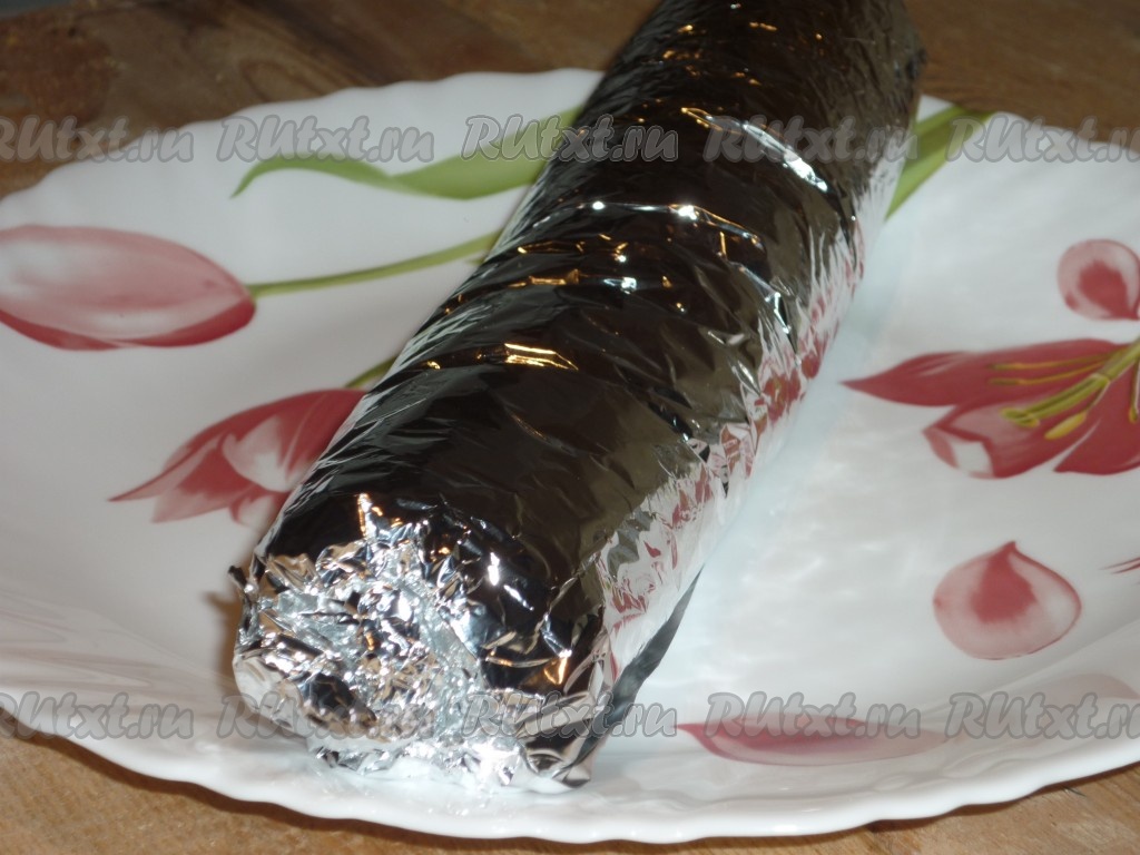 Завернуть рулет в фольгу и отправить в холодильник на один час.
