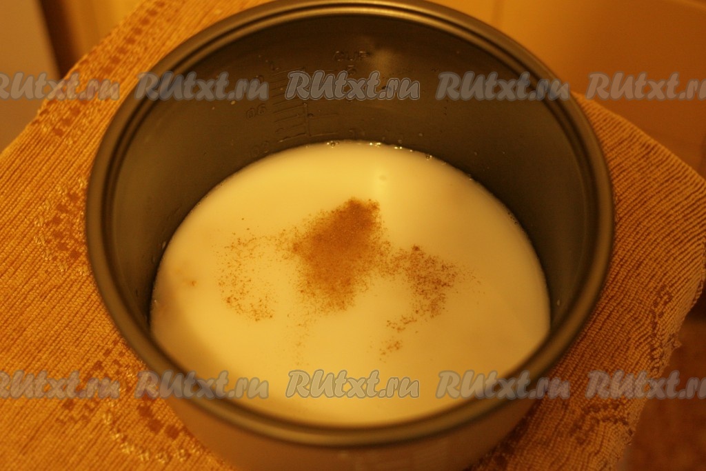 Овсяную крупу, сливки, воду, ванилин, корицу добавляем в емкость для мультиварки.