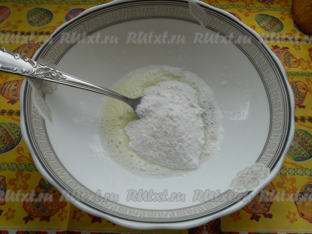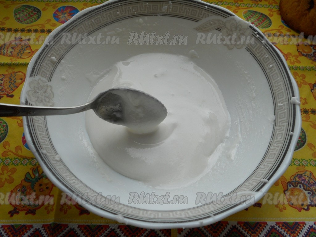Тщательно растереть массу, благодаря соку лимона, белковая глазурь побелеет.