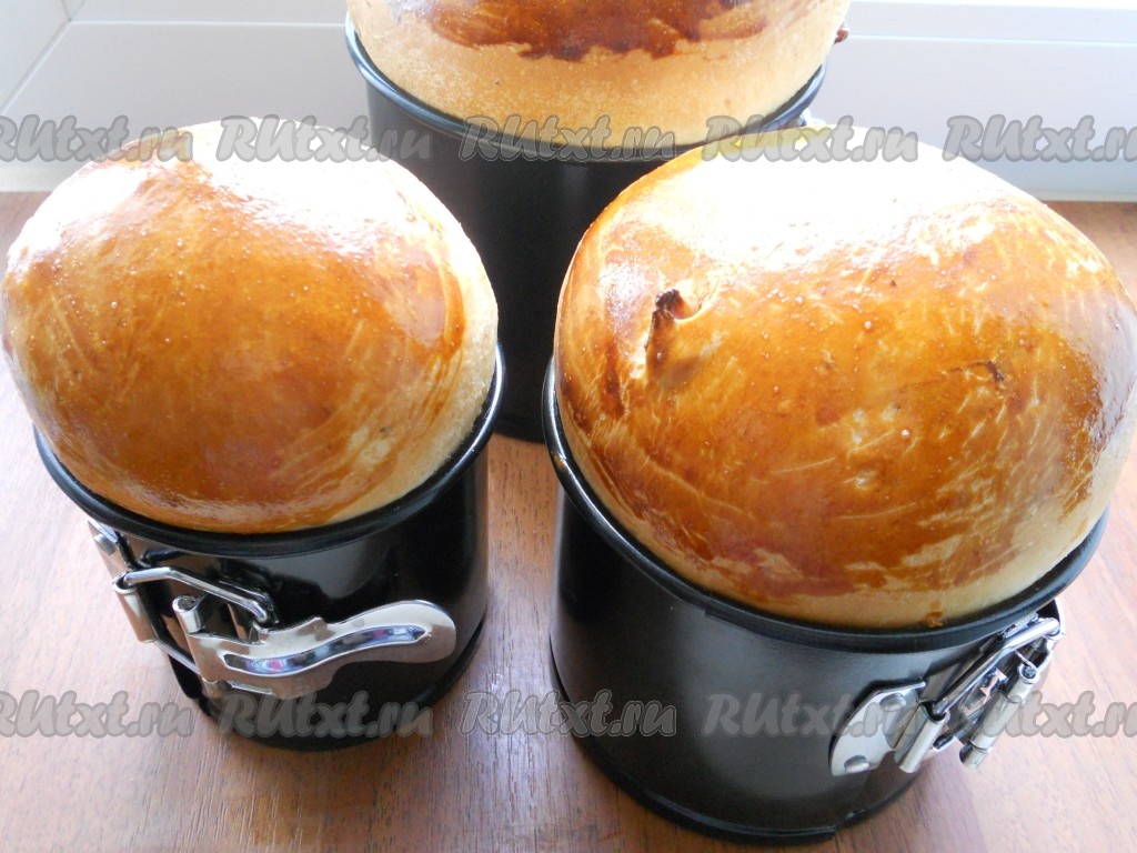 Духовку разогреть до 180-190 градусов, поместить в нее формы с тестом. Выпекать куличи 40-50 минут.