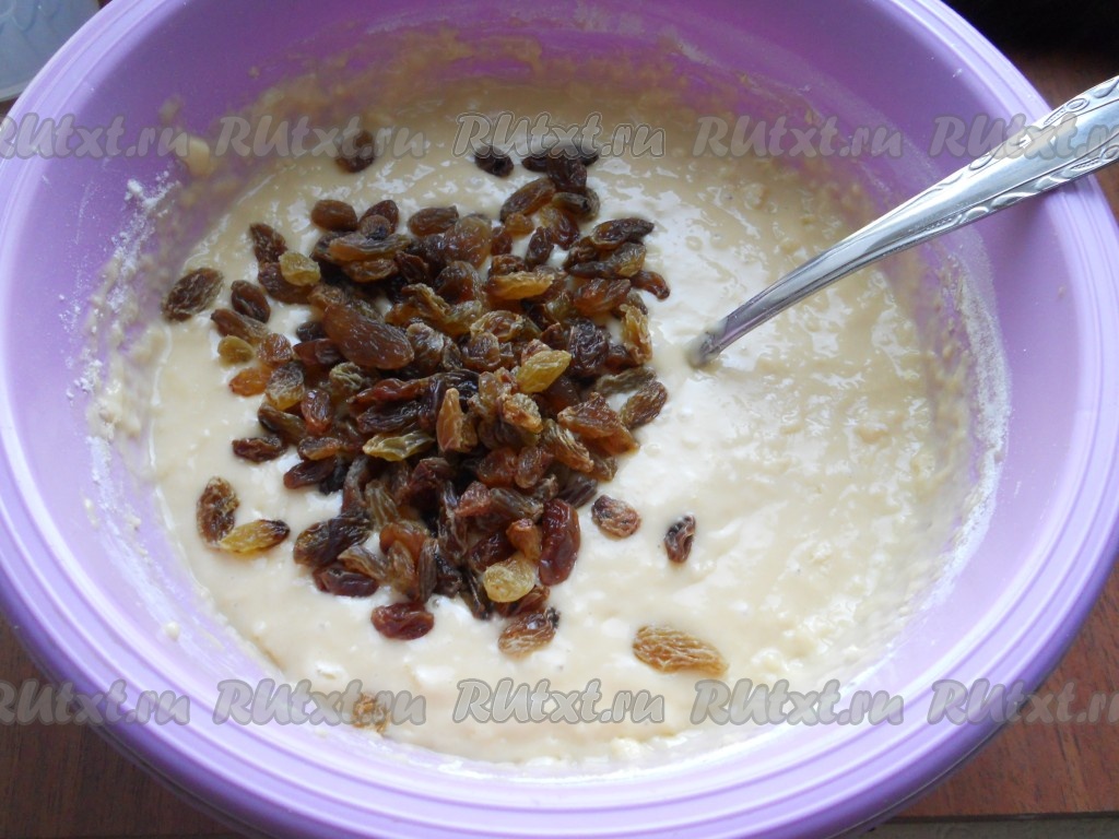 Сюда же добавить предварительно запаренный и обсушенный изюм.