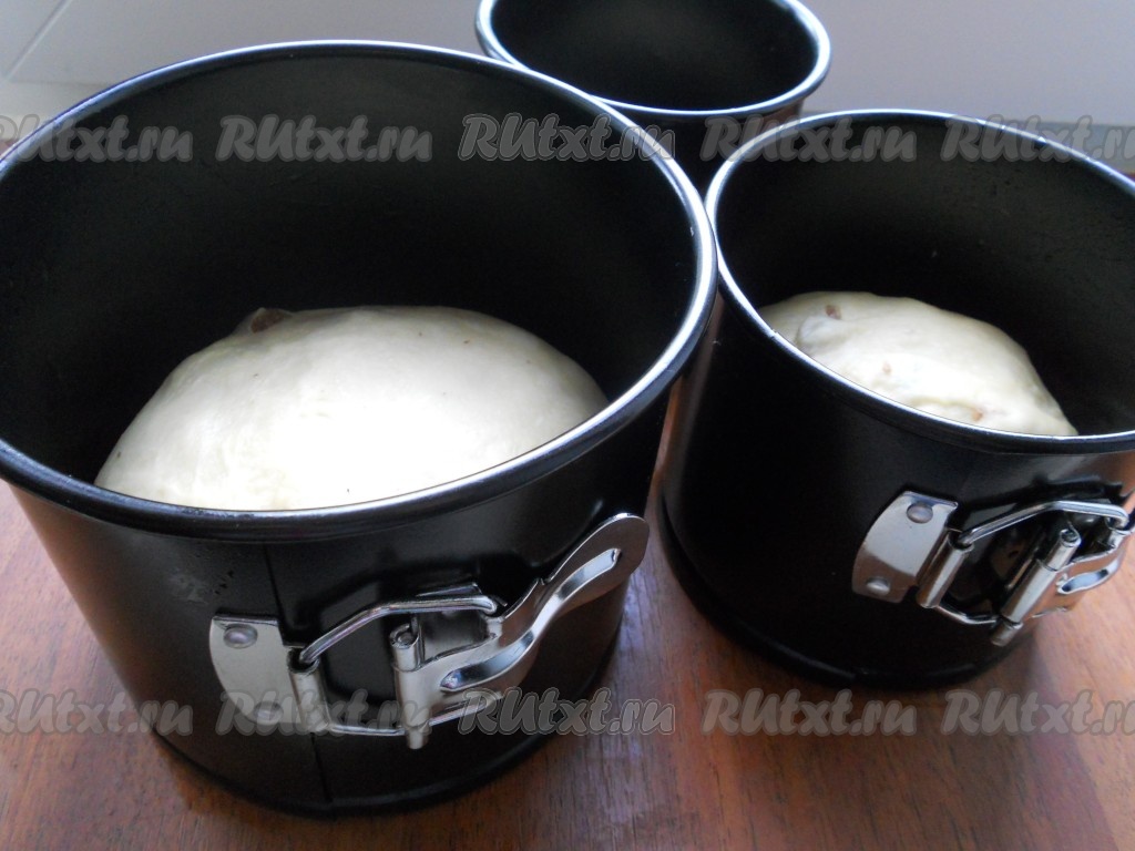 Накрыть формы с тестом чистым полотенцем и оставить на 1,5 часа в теплом месте. Смазать верх подошедшего теста желтком.