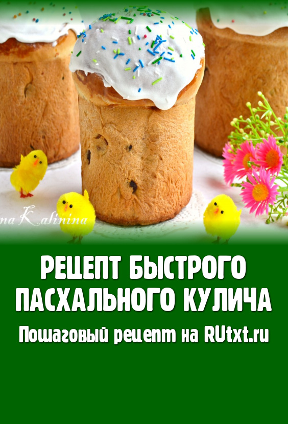 Многие хозяюшки не пекут куличи, предполагая, что процесс приготовления очень сложный. И действительно, есть довольно сложные рецепты куличей, которые отнимают достаточно много времени и сил. Я же хочу предложить вам попробовать испечь быстрый пасхальный кулич, с которым справится даже начинающая хозяйка. Куличи по этому рецепту выходят очень вкусными, нежными и ароматными, получаются всегда. Попробуйте обязательно!