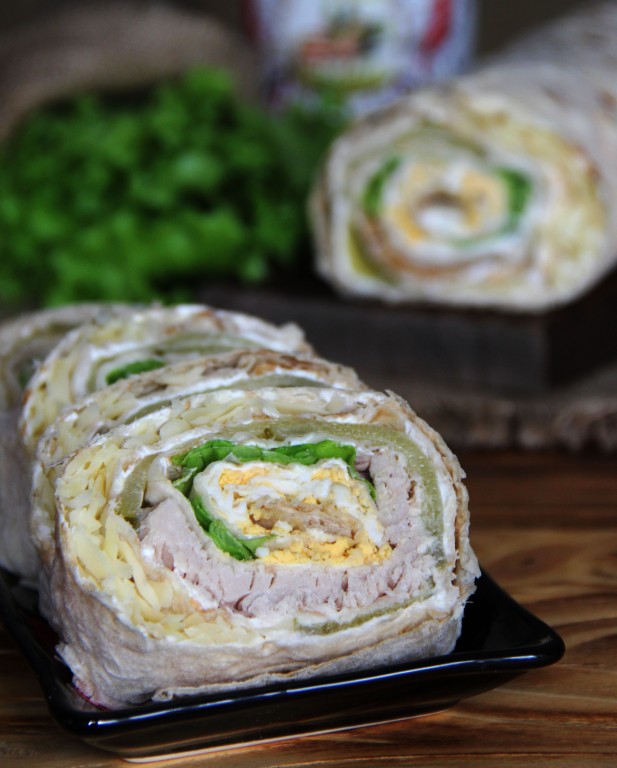 Нежный, вкусный, пикантный закусочный рулет из лаваша с творожным сыром и курицей готов, нарезать его на кусочки и подать к столу.
