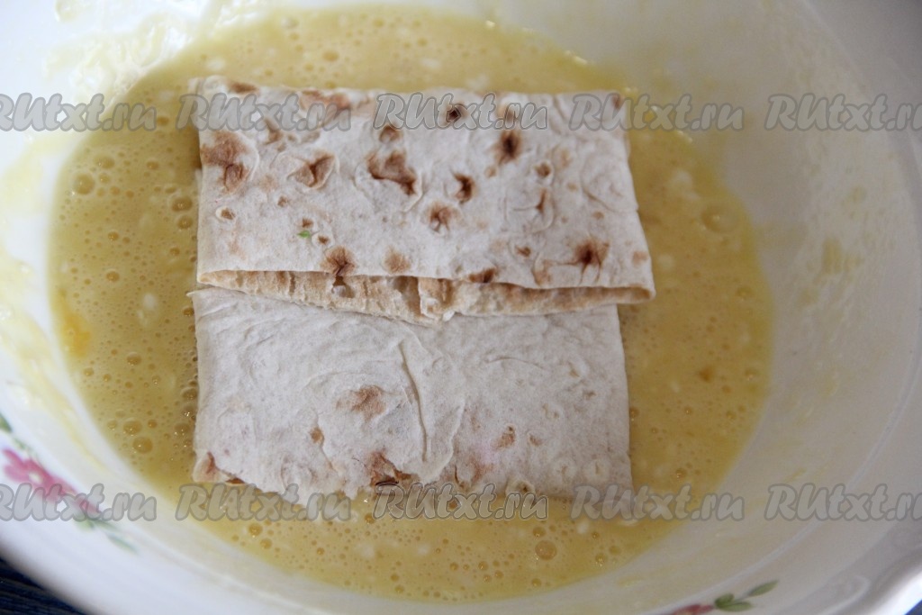 Обмакнуть со всех сторон конвертик из лаваша в кляр.