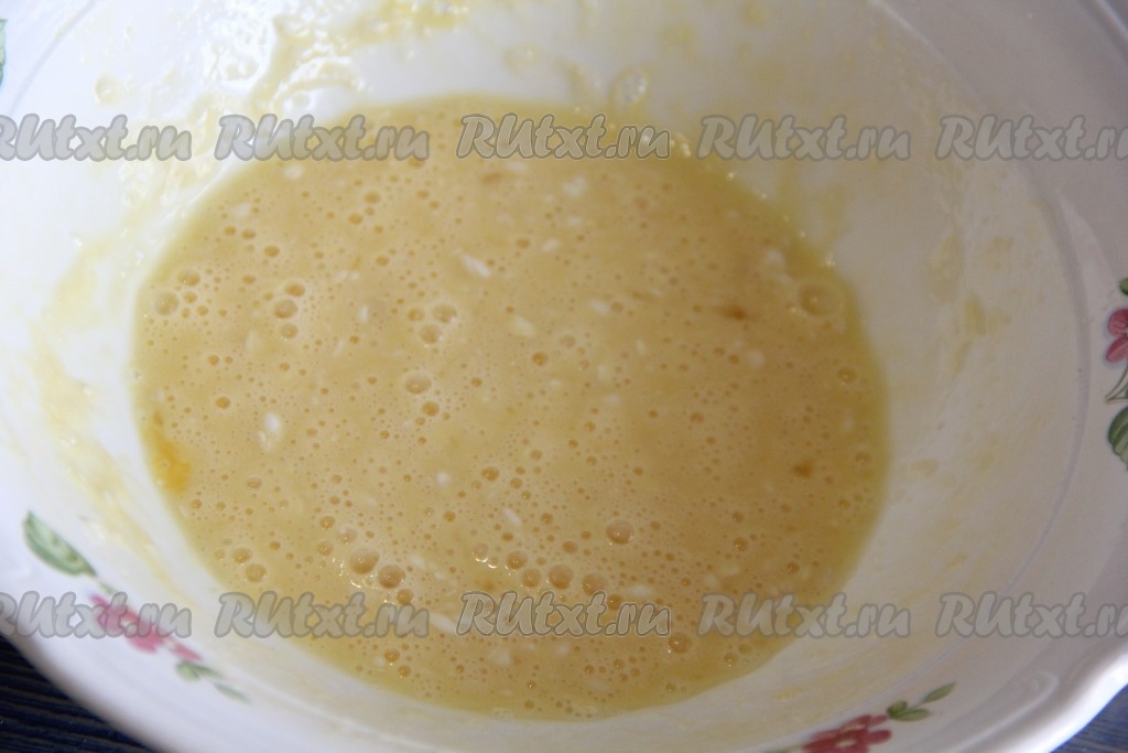 Перемешать яйцо с мукой и солью с помощью венчика или вилки.