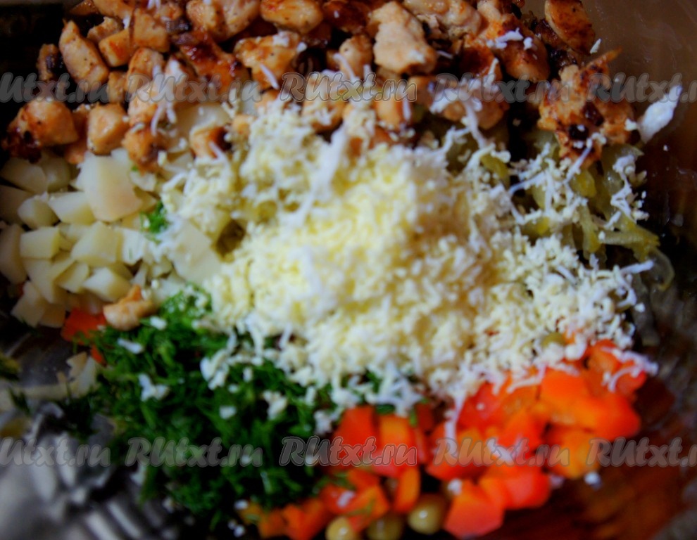 Салат «Оливье» получил название в честь своего создателя - шеф-повара Люсьена Оливье, державшего в Москве в начале 60-х годов XIX века ресторан парижской кухни «Эрмитаж». С того времени в рецепт салата привнесены значительные изменения. Кто-то любит классический вариант салата с варёной колбасой, кто-то готовит "мясной салат" с говядиной, а кто-то предпочитает "столичный салат" с отварным мясом курицы. Меняются названия, меняются ингредиенты... Сегодня предлагаю вам приготовить сытный и очень вкусный "Оливье" с жареной курицей. Уверена, этот вариант салата понравится многим. Итак, готовим!