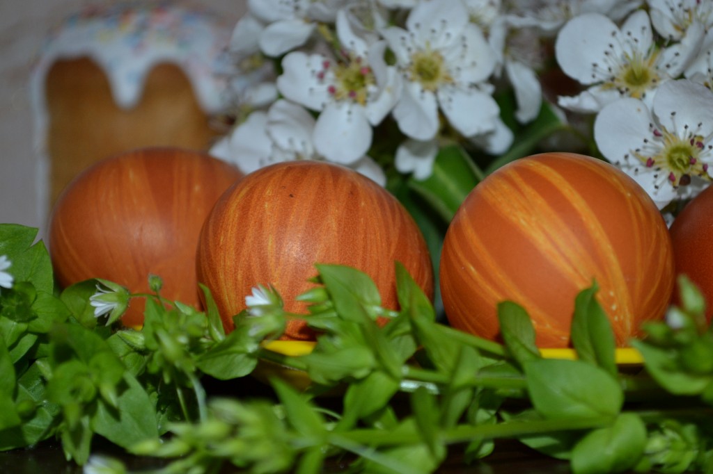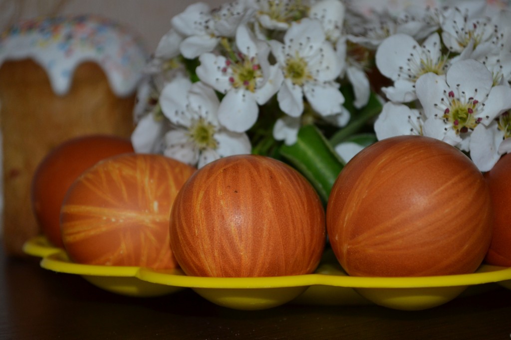 Рецептов окрашивания яиц к Светлому празднику Пасхи достаточно много. Я предлагаю окрасить яйца с помощью ниток и луковой шелухи. Способ достаточно прост, а яйца выглядят нарядно.