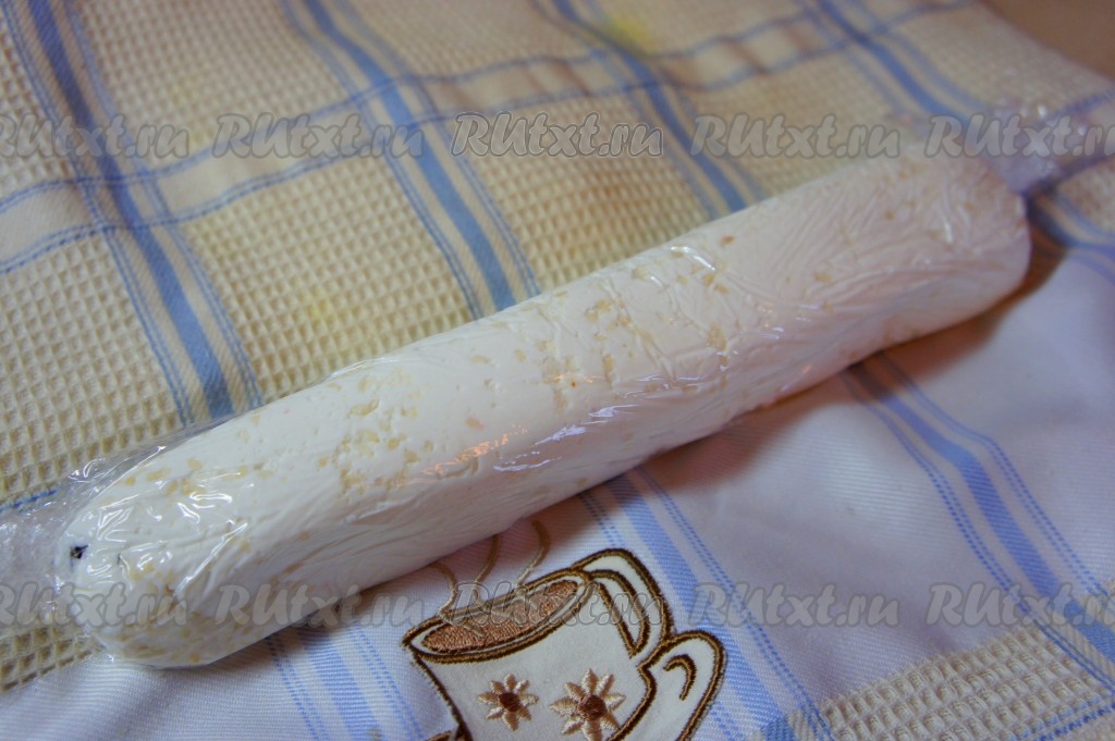 Свернуть плотным рулетом. С помощью пищевой плёнки это будет достаточно легко.
